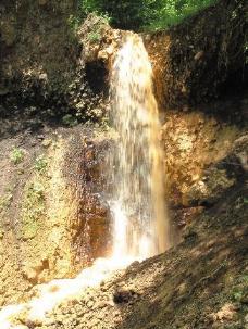 追分から石尊山への登山道の途中にある血の池より流下する赤褐色の滝で、別名血の滝とも呼ばれる。
